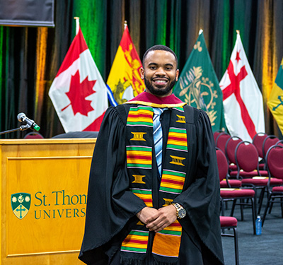 In his valedictory, David Eno spoke about the importance of doing what you love to the more than 300 graduates who received certificates and degrees in social work, applied arts, and arts at the 2022 Spring Convocation. There were also 70 alumni from the classes of 2020 and 2021 in attendance to celebrate their graduation in person.
